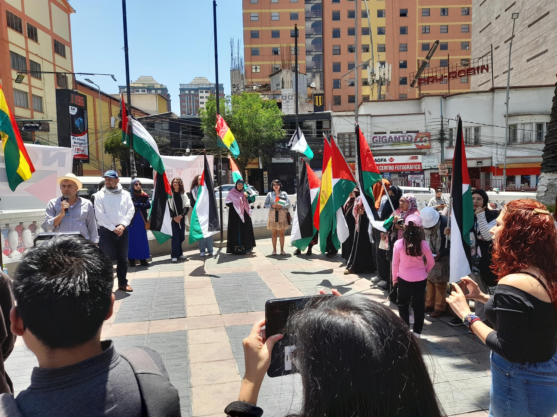 روز یکشنبه 23 مهر 1402 ( 15 اکتبر 2023 ) تجمعی از سوی جامعه فلسطینیان مقیم بولیوی در میدان دانشجو لاپاز مرکز بولیوی و در حمایت از مردم مظلوم فلسطین برگزار شد. اقشاری از مردم بولیوی و حامیان ملت فلسطین وهمچنین تعدادی از دیپلماتهای کشورهای دوست و حامی فلسطین به همراه آقای محمود الوانی سفیر فلسطین در بولیوی در این مراسم حضور داشتند.